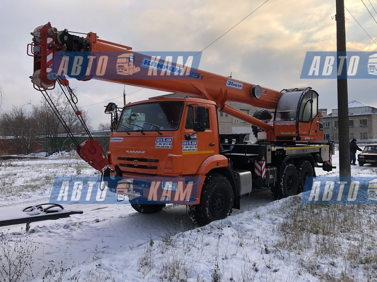 Автокран автомобильный КС-55713-5К-4 грузоподъемностью 25 тонн на шасси автомобиля КАМАЗ-43118 предназначен для выполнения погрузочно-разгрузочных и строительно-монтажных работ на рассредоточенных объектах.