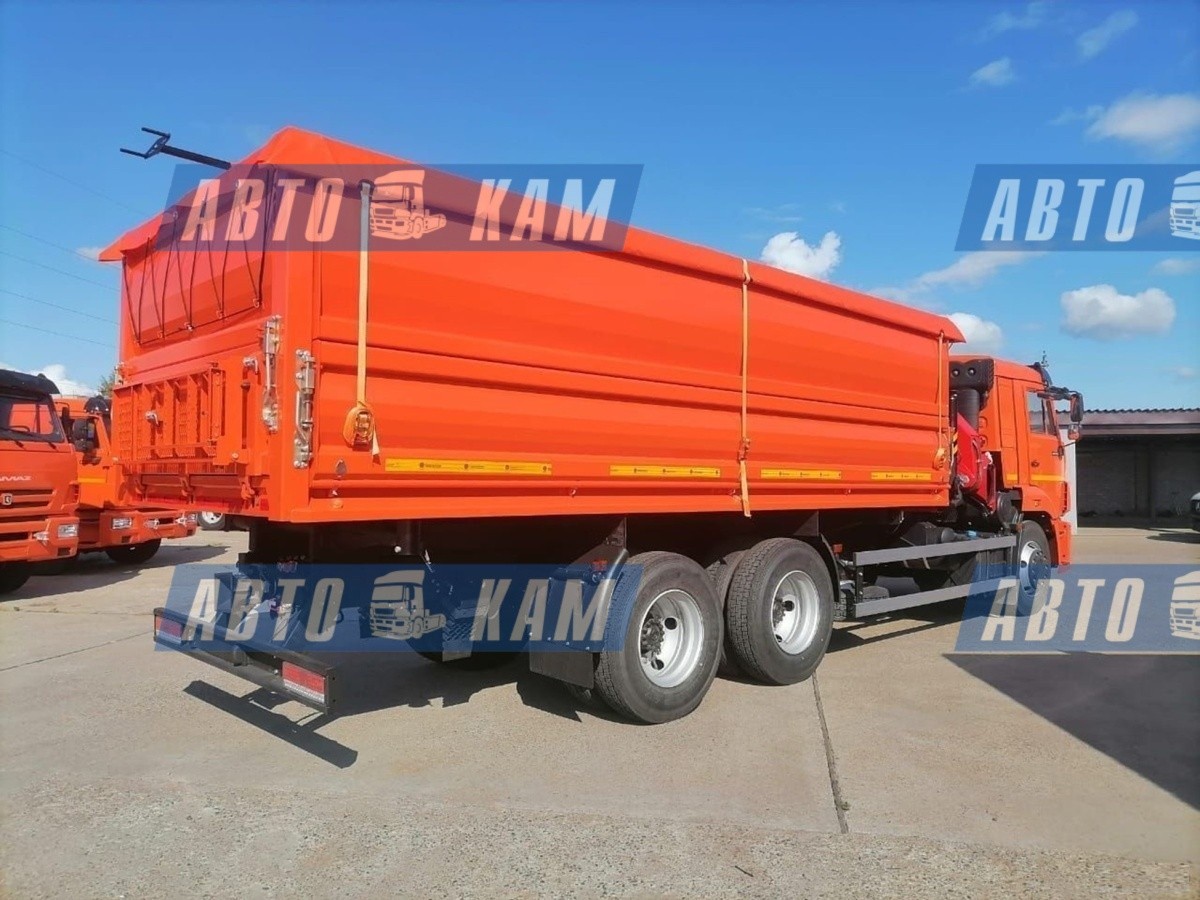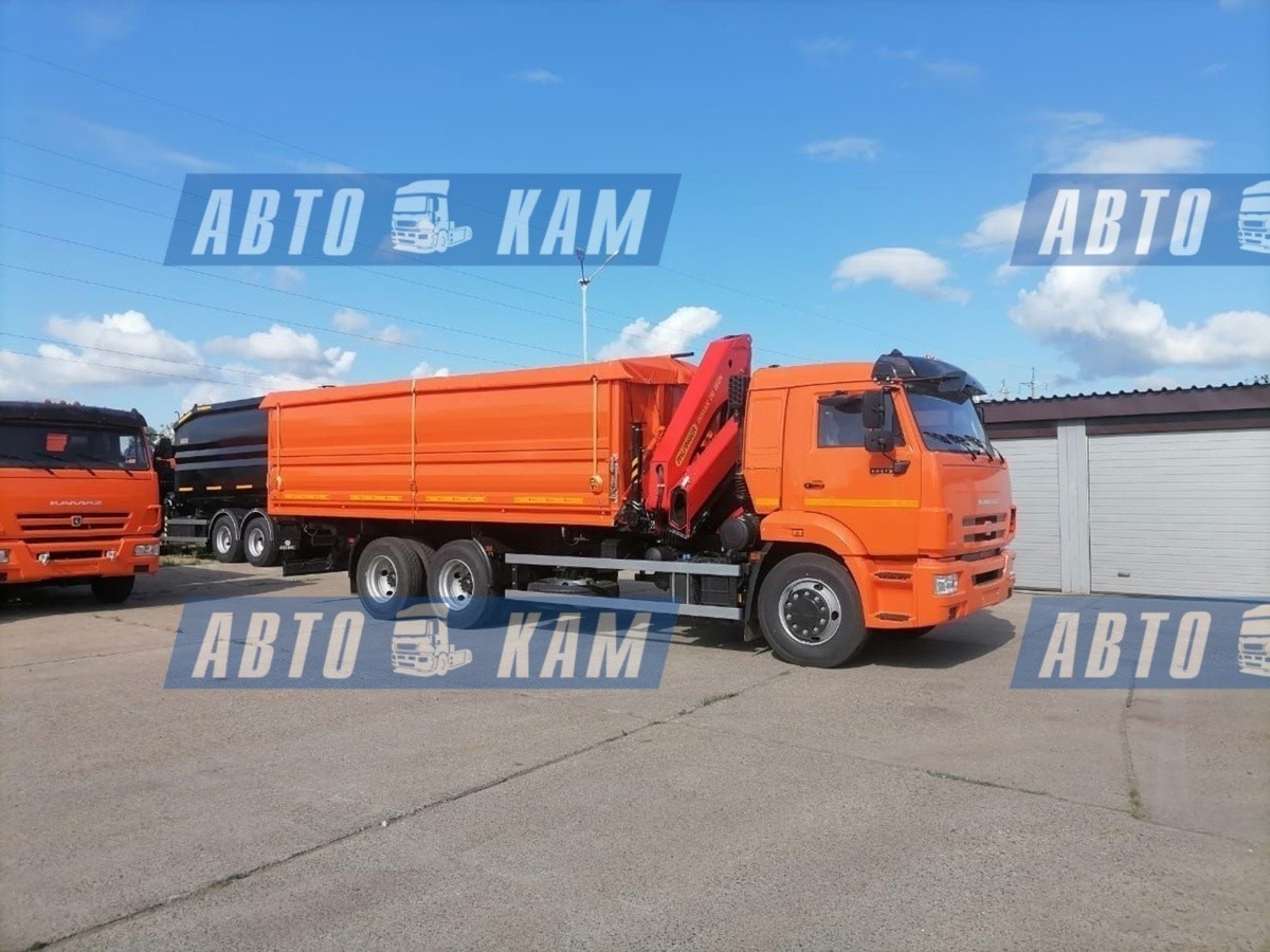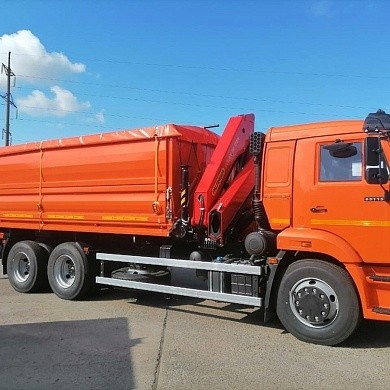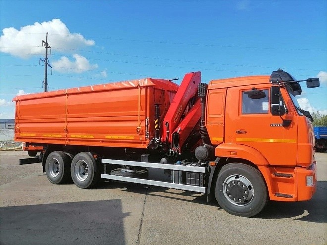 АвтоКАМ представляет самосвал с трехсторонней разгрузкой КАМАЗ 65115 с кран-манипулятором ИНМАН ИМ-150 грузоподъемностью 6100кг и вылетом стрелы 8 метров. Объем кузова 22 куба