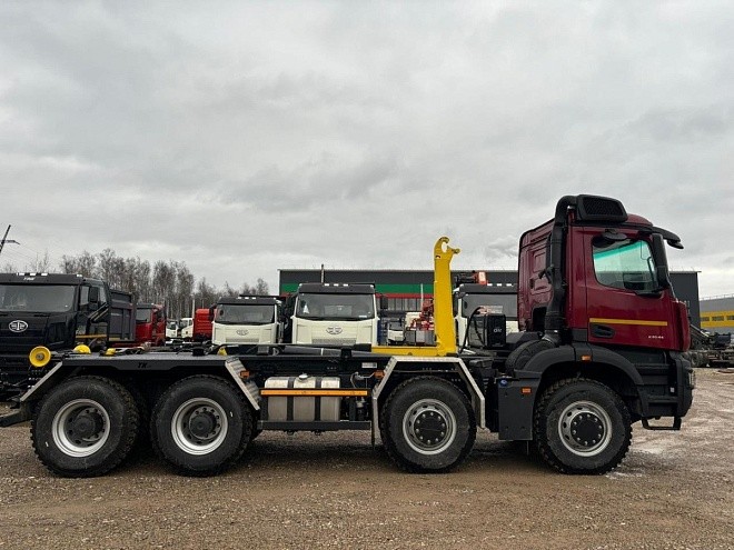 - Выдающаяся грузоподъемность и надежность: Сочетание усиленного шасси полной массой 50 000 кг и австрийского крюкового погрузчика Palfinger PH T26 обеспечивает работу с полезной нагрузкой до 26 тонн и контейнерами различных типоразмеров.