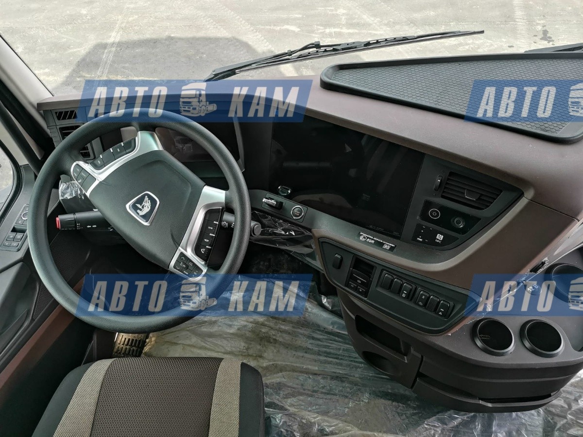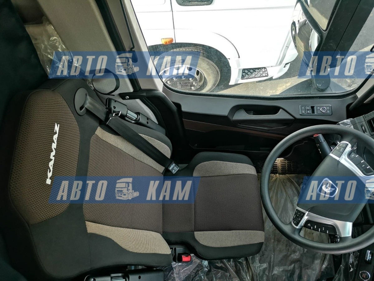 На автомобиле КАМАЗ 54902-794-49 (В5) установлена современная комфортабельная кабина, в которой есть все необходимое для удобства работы и отдыха: - Сиденье на пневмоподвеске с подогревом - Мультифункциональное рулевое колесо - Кондиционер - Автономный отопитель кабины 4 кВт - Два спальных места с ортопедическим матрасом - Мультимедийная система с сенсорным дисплеем диагональю 10”, с функциями навигатора, радио, системы громкой связи, воспроизведения музыки, просмотра видео online или offline, контроля параметров автомобиля, управления отопителем.