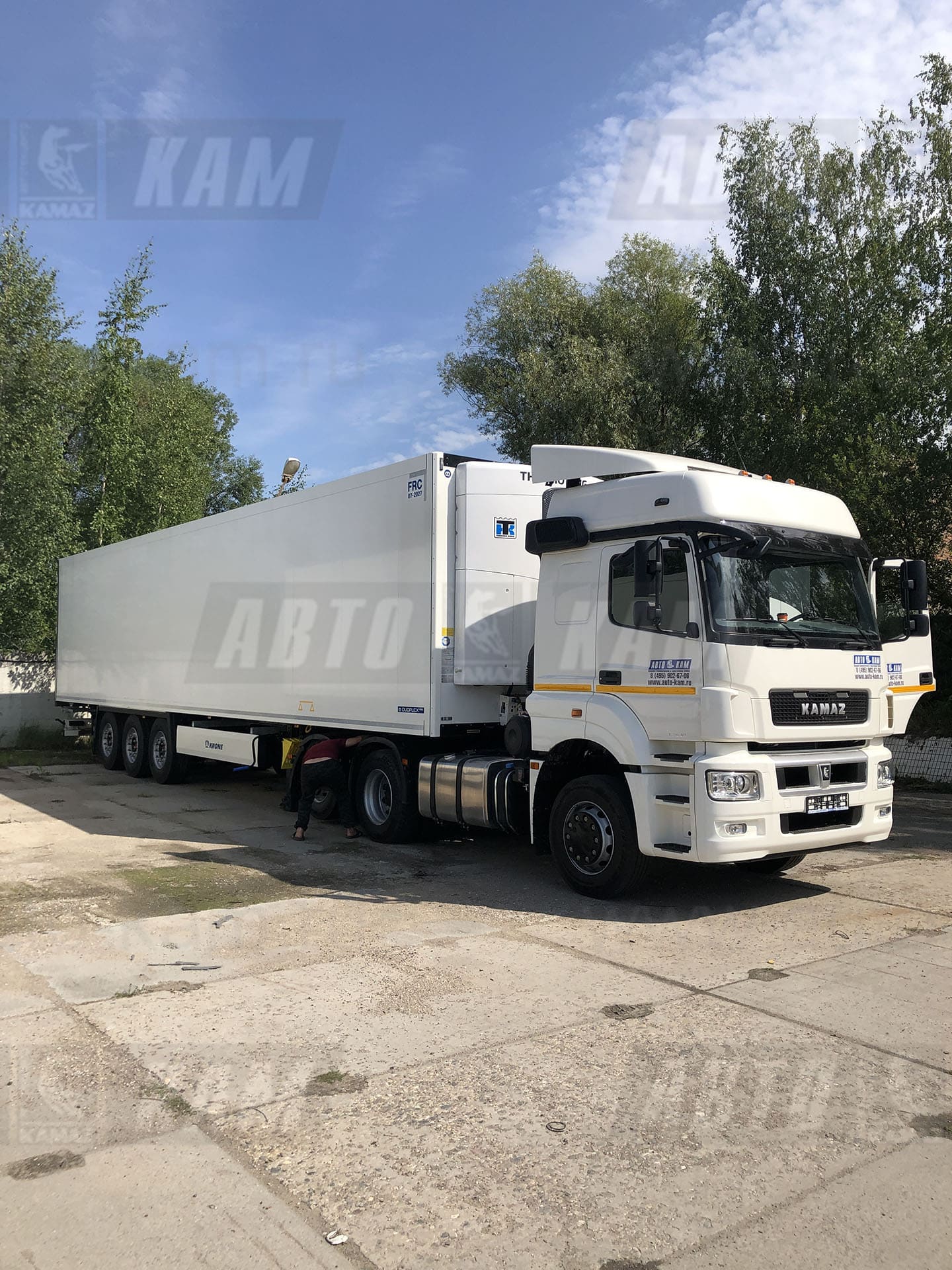 АвтоКАМ отгрузил нашему повторному клиенту 2-ой полуприцеп рефрижератор KRONE с ХОУ CARRIER VECTOR 1550 в составе с тягачом КАМАЗ 65209-002-87 на автоматической коробке.